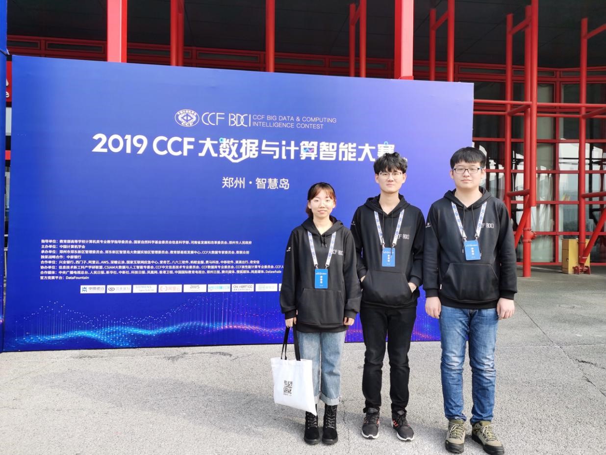 2019年12月22日,2019 CCF大数据与计算智能大赛(第七届)决赛嘉年华在郑州智慧岛圆满落幕。河南省政协副主席张震宇、中国科学院院士梅宏等100多位专家和企业代表出席了本次活动。在刘美玲老师的指导下,由来自437437必赢国际网址信息学院人工智能应用创新实验室的2019级研究生马凯欣获得了“关联模型”赛道一等奖,2019级研究生林东团队获得了“关联模型”赛道三等奖。