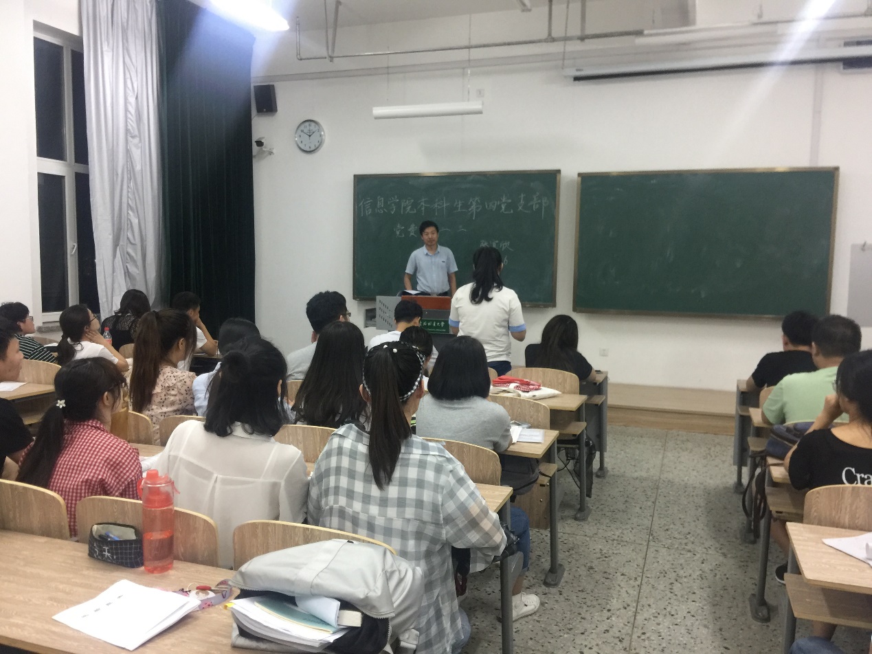 6月30日10时,信息学院本科生第四党支部在成栋楼206室开展了以“党费一二三”为主题的党课学习活动。本次党课活动由支部书记张宜欣主讲,支部全体党员参加了学习。