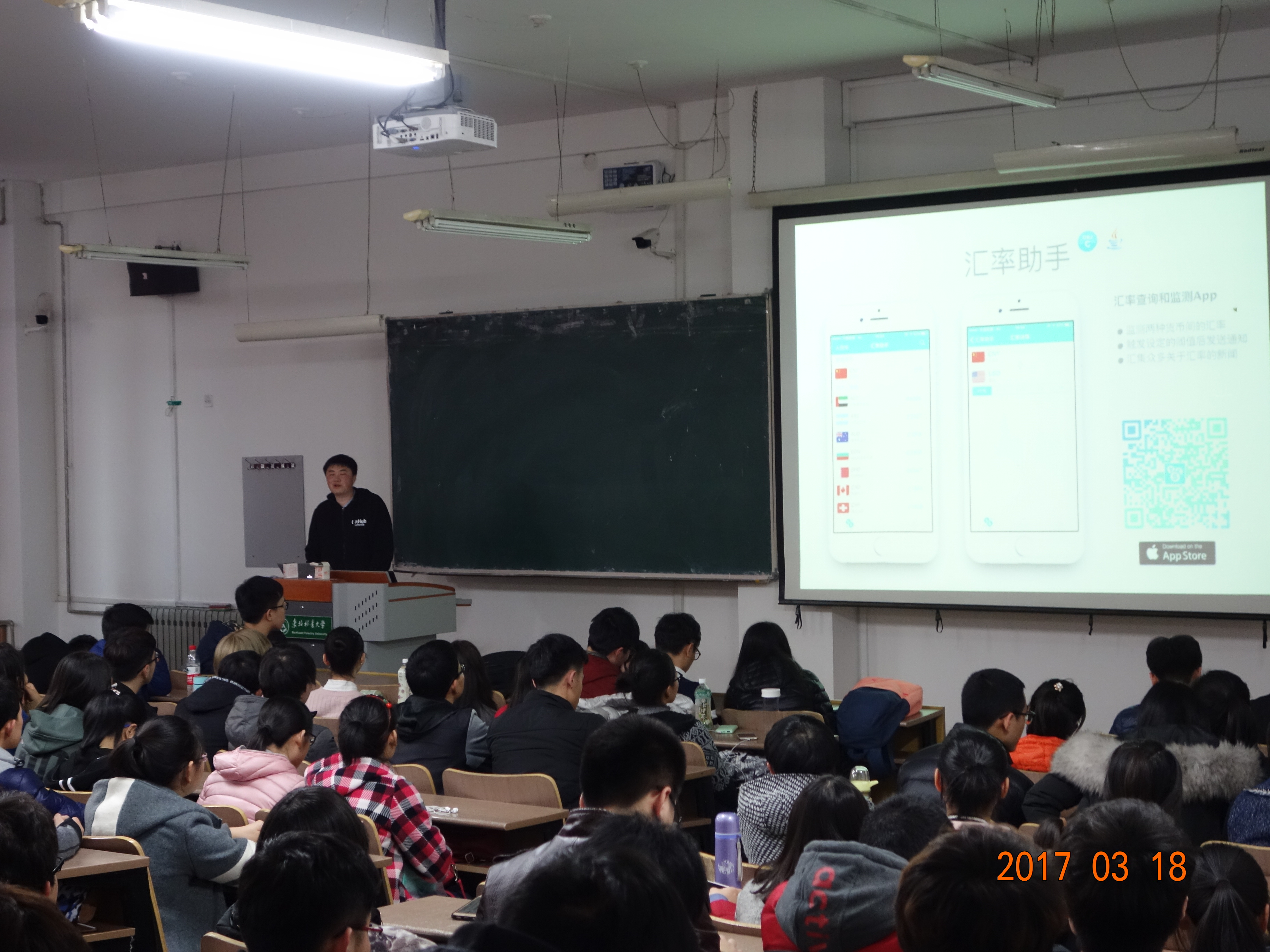 李萌同学从项目开发、大学生能力培养、留学生活分享等几个方面与同学们进行了互动交流。在项目介绍环节,李萌同学分别介绍了他在林大本科阶段与日本读研阶段的项目经历,包括Java企业级项目开发,IOS项目开发,微信公众号程序开发、测试工具开发的经验与技巧等,为同学们进行了大量的项目演示,介绍了很多当下流行的IT新技术,并讲述了项目开发中发生的奇闻趣事,在场的同学们听得津津有味,兴致勃勃。此外李萌同学还分享了他的交换留学经验,分别介绍了在林大与日本留学期间的学习、工作生活情况,分享了留学准备、院校专业选择申请、申请流程等自身经验,并针对同学的疑问给出了解答与建议。本次讲座李萌同学通过自身的经历,鼓励在校同学要打好扎实的理论知识基础,培养自己的专业实践能力,帮助同学们更加高效高质量地度过本科学习生活。