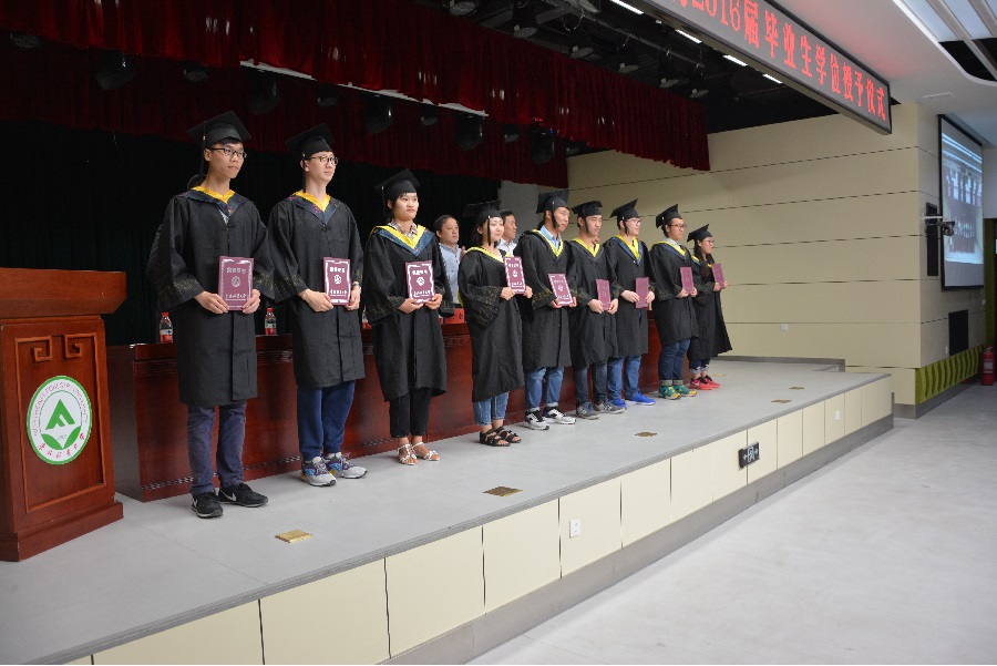 在悠扬的乐曲声中,李顺龙副校长、陈广胜院长为获得学位的全体毕业生一一颁发学位证书、扶正流苏,亲切的为毕业生整理学位服,并与每一位毕业生合影留念。听着老师殷切的嘱咐,看着老师为自己的成绩骄傲,自豪之情洋溢在每一位毕业生年轻的脸上。