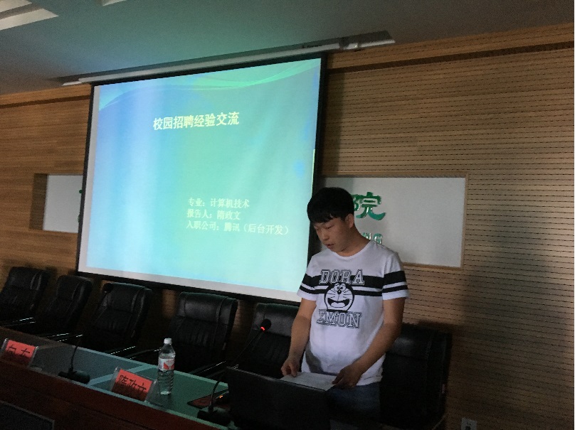“几年前的一次偶然邂逅,成就了研究生生活的充实岁月。每一个走过的脚步都是一次美好的尝试,每一次成功都来自一种传承的积淀。他们虽然即将毕业离去,但却留下一个个关于青春、关于梦想的故事。”经验分享会在主持人信息学院研究生会主席陈雨佳同学精彩的开场白中拉开序幕。首先由签约百度的向东同学为大家介绍实习与就业之间的关系,面试的技巧,让大家明白就业项目的重要性。然后由签约美团网的张雪同学为大家介绍自己的学习方法,“温故而知新”、“今日事今日毕”,让大家懂得基础才是决定日后高度的关键。而后为大家分享经验的是签约腾讯的隋政文同学,他告诉我们HR并不是那么难以对付,坦然面对每一个问题,把自己学会的知识踏踏实实的回答出来,那么“BAT”离我们并不遥远。最后刘岩同学为即将面临找工作的15级同学们分享了对于人生目标的理解,自己选择什么样的生活方式都需要做好准备,同时分享了自己的求职趣事,他说“做好之前几位所说的,也许找工作就是无心插柳柳成荫的事。”
