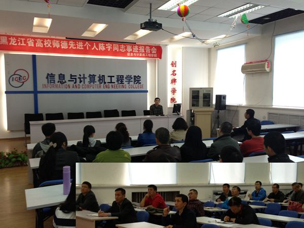 为切实提高广大教师的师德素养,增强教书育人的责任感和荣誉感,办好人民满意教育,2014年5月14日下午14时信息与计算机工程学院在信息楼216会议室举行了师德先进事迹报告会,信息学院全体教师参加了会议。