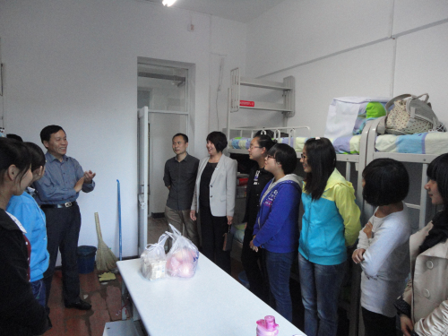 2013年9月17日下午四时,由学院陈广胜院长、岳金龙书记分别带队,带领学院班子成员、政工干部等走访了2013级新生寝室,为每位新生带去了学院中秋佳节的节日问候,并为新生同学发放了学院准备的月饼、水果等节日礼物。