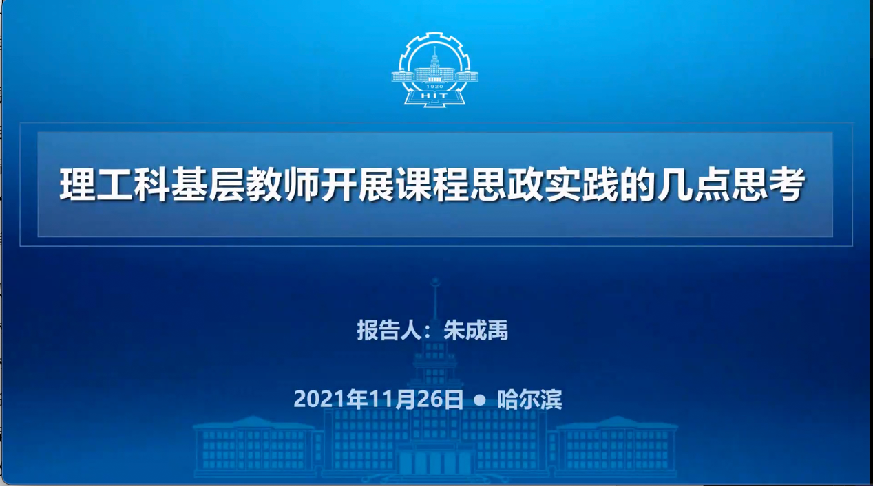 为落实《高等学校课程思政建设指导纲要》文件精神,推进“课程思政”教育教学体系建设,坚持立德树人根本任务,满足教师们对于提升课程思政育人能力的迫切要求,11月26日下午13:30信息学院通过腾讯会议举办了第三期“课程思政专家谈”系列线上讲座交流活动。本次活动邀请哈尔滨工业大学的朱成禹副教授做了题为《理工科基层教师开展课程思政实践的几点思考》的主题报告。