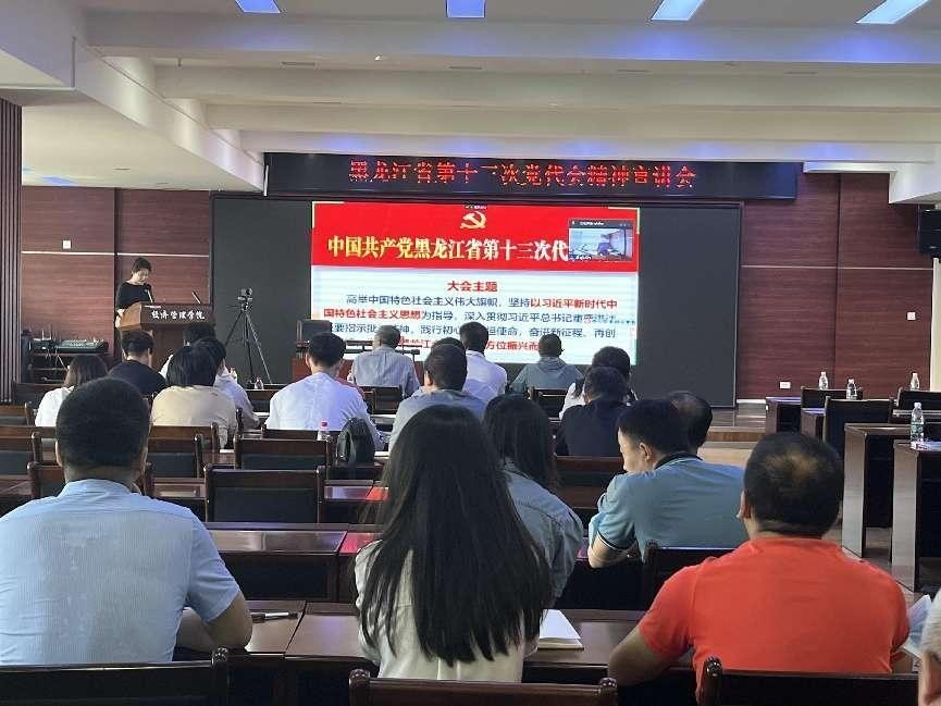 省第十三次党代会坚持以习近平新时代中国特色社会主义 思想为指导,全面贯彻党的十九大和十九届历次全会精神,深入 落实习近平总书记重要讲话、重要指示批示精神。于冰教授从充 分认识省第十三次党代会召开的重大意义、总体领会省第十三次 党代会报告的基本框架、深刻理解龙江未来五年振兴发展的方向、