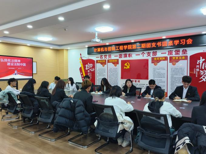 今年是第十个“国家宪法日”,本期学习以“大力弘扬宪法精神,建设社会主义法治文化”为主题。会上,副书记王仕通带领大家重温了宪法的制定和修改历程,深刻理解和认识修订宪法的重要意义。随后围绕“如何培养大学生的法治意识和法治精神 ”进行了讨论,大家表示新时代大学生要自觉学习宪法,遵守法律法规,做到知行统一,让守法成为一种素质。随后,常务副书记孙慧杰对近期开展的团员教育评议和团员发展工作进行了总结。最后,团委书记张音发言,她强调:全体团员要以习近平法治思想为指导,谨守法律底线,弘扬社会正气,团干部要担当进取,是非分明,敢于斗争,不可触碰纪律红线。