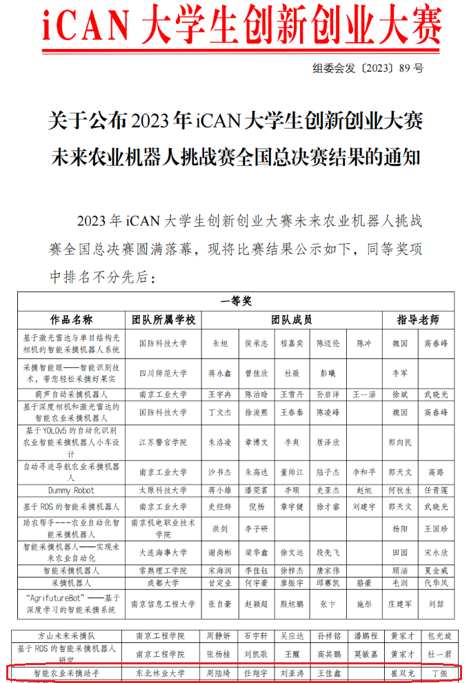 iCAN大学生创新创业大赛于2023年入选《全国普通高校大学生竞赛分析报告》竞赛目录。iCAN秉承“自信、坚持、梦想”的精神,倡导科技创新服务社会,引导和激励高校学生勇于创新,发现和培养一批有作为、有潜力的优秀青年创新人才,促进和加强物联网、智能制造、人工智能等高科技领域的产学研结合,搭建科技人才创新生态平台。未来农业机器人挑战赛作为iCAN大赛的挑战赛项目,旨在吸引更多的优秀学生参与,鼓励学生创新和智造,帮助解决农业难点、热点问题。