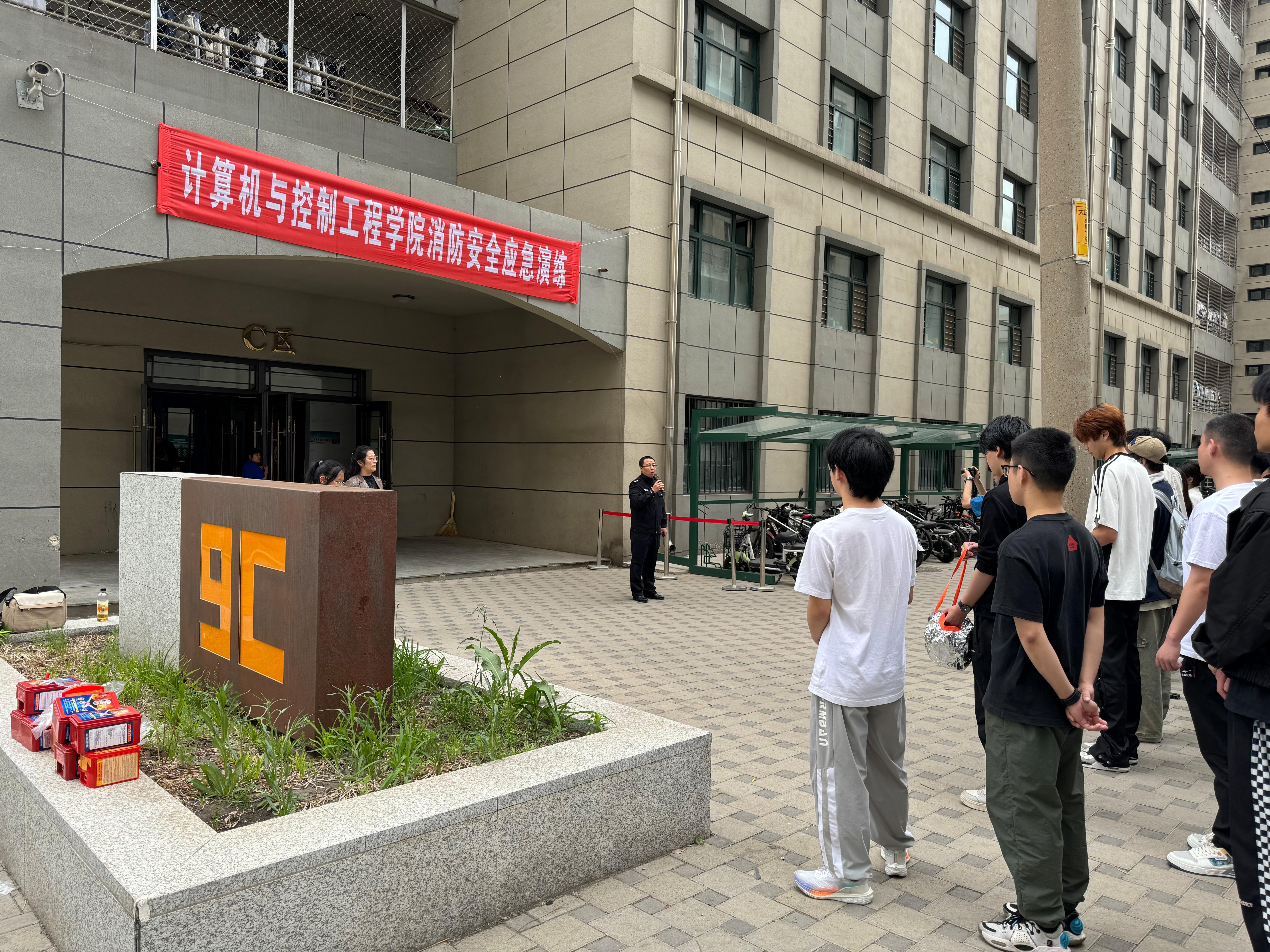 演练开始前,保卫处消防安全监督管理科负责人王宇新对火灾逃生疏散演练进行指导和讲解,他讲到面对火灾反应要迅速、行动要敏捷、决策要正确。下午14:10分,随着消防火灾警报声的响起,各楼层安全员迅速到达指定地点,沉着冷静地指挥学生用湿毛巾捂住口、鼻,尽量将身体放低,从安全疏散通道紧急撤离公寓楼。全体学生在指定时间内安全、快速、有序地撤离到了安全地点。