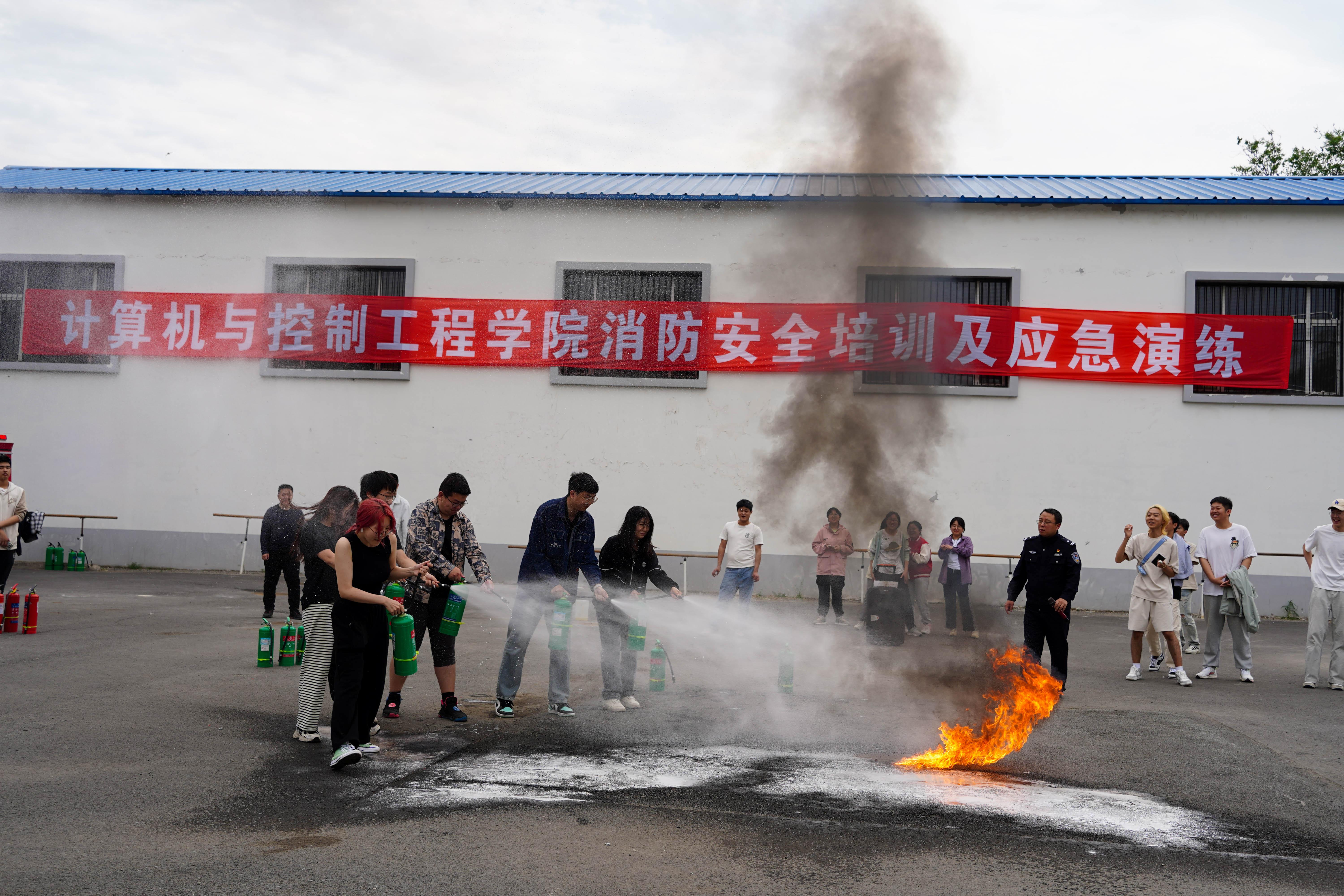 随后,王宇新对消防器材使用方法进行了讲解和实操,并一对一指导正确使用消防器材。讲解完成后,消防员点燃演练火源,师生每组10人按照“提、拔、瞄、喷”程序,在上风口距离明火3米距离操作灭火器灭火。