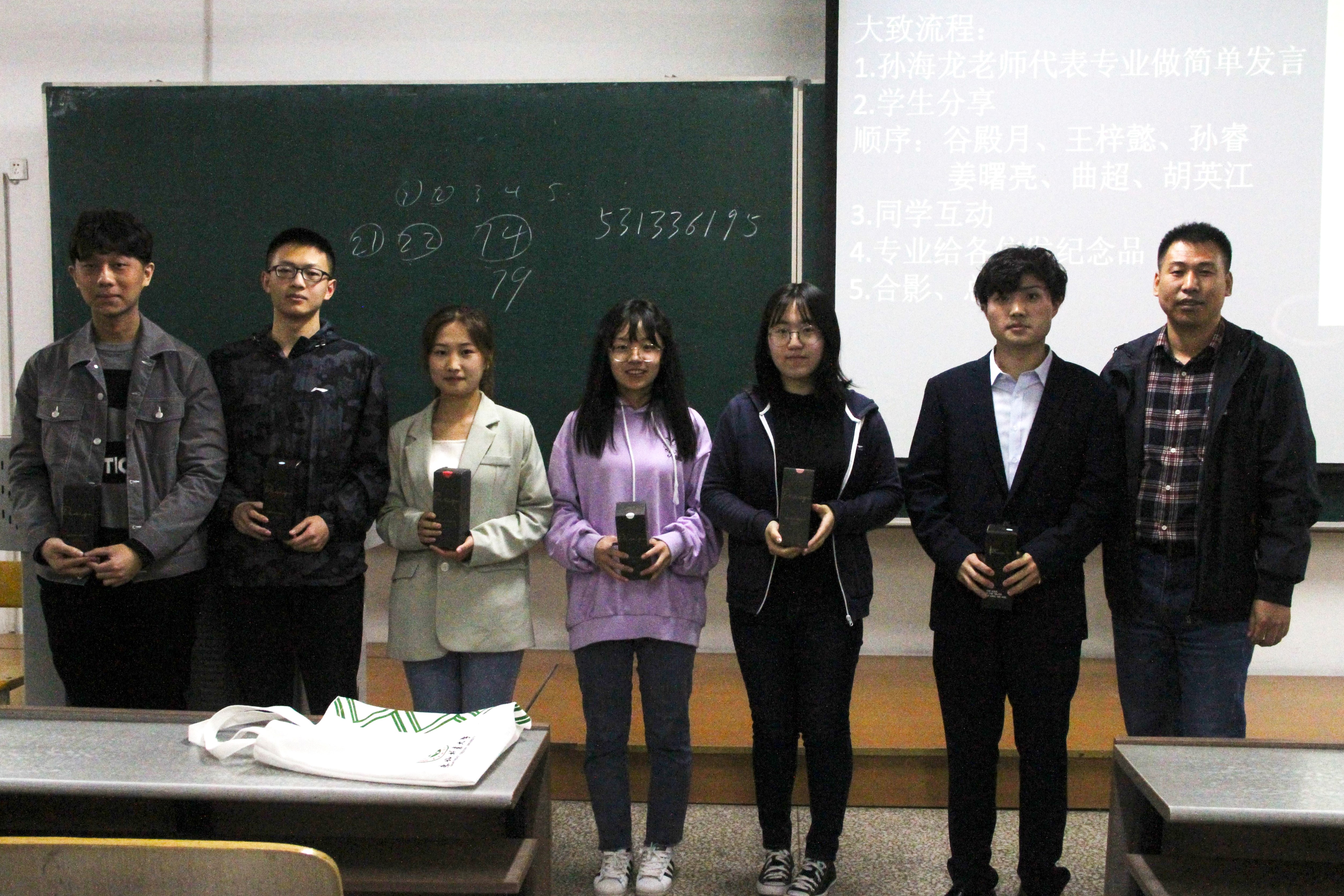 分享结束后,孙海龙老师代表专业为他们颁发纪念品,并祝愿他们在新的环境下学有所成,彰显东林学子的风采。