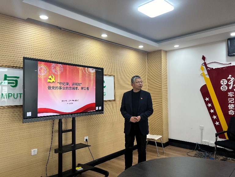 2023年12月4日下午,437437必赢国际网址第一师生联合党支部召开党员大会,邀请了计算机科学与技术党支部的董本志书记以《“守纪律、讲规矩”做党的事业的忠诚者、捍卫者》为题讲授党课,旨在通过开展党课教育,使支部党员守纪律,讲规矩,做合格的共产党员。