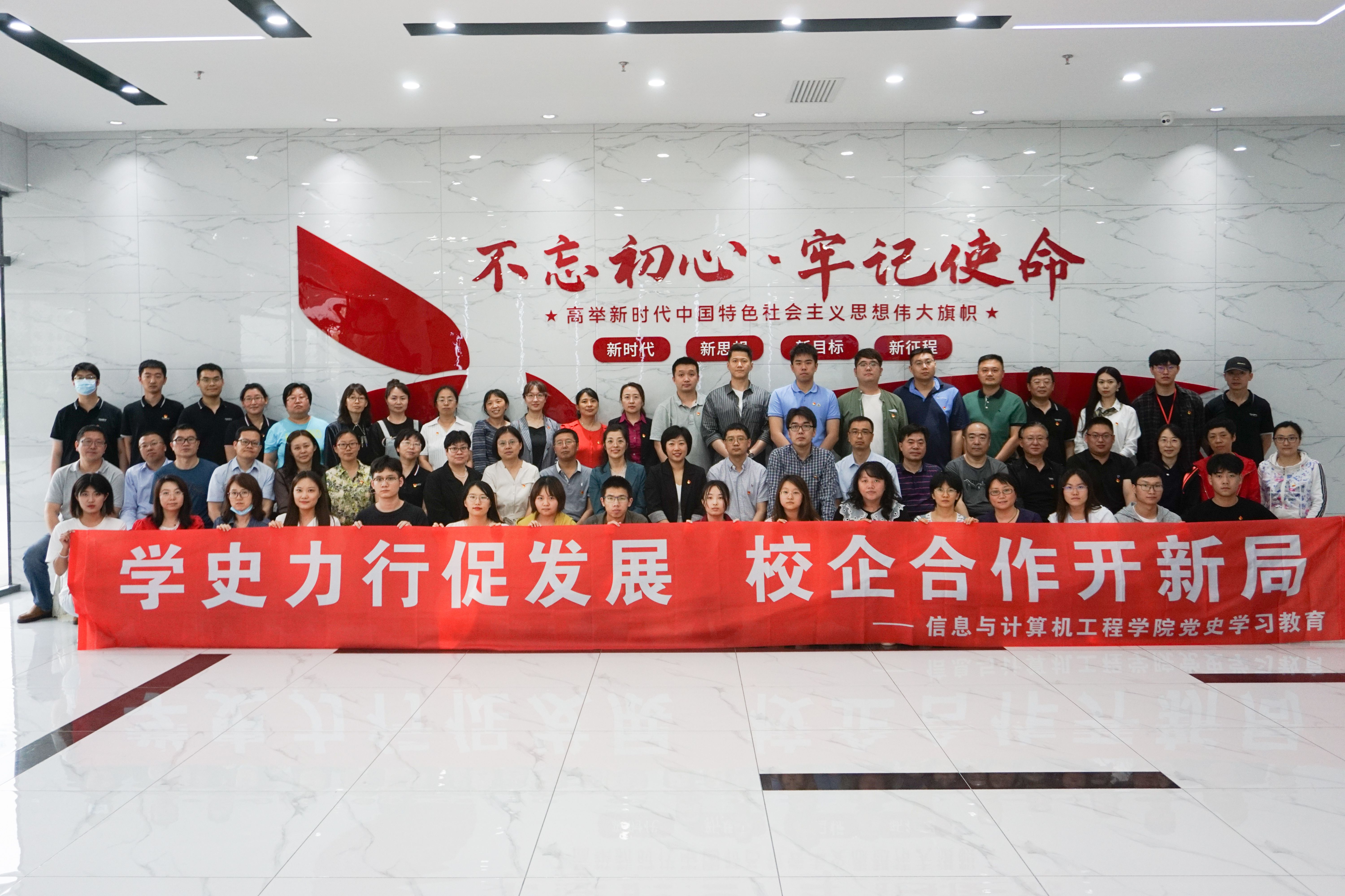 为推动学院党史学习教育落地见效,强化党建引领作用,发挥校企双方优势,加强推进校企党建联建育人模式,6月10日下午,信息学院院长汪国华、党委书记钟蕾、副院长李丹、党委副书记庄雯培、各教研室教师代表、学工组全体辅导员、学生党员代表60余人前往黑龙江长城计算机系统有限公司开展校企联建活动。