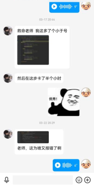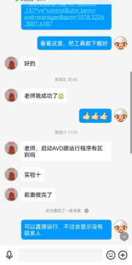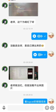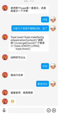在学生进行实验的过程中,教师全程在线进行指导,对于共性问题在线进行解答和说明。另外,学生进行实验的时间相对比较分散,尽量做到及时响应,解决学生提出的问题,与部分学生进行互动答疑的图片如图9-图12所示。