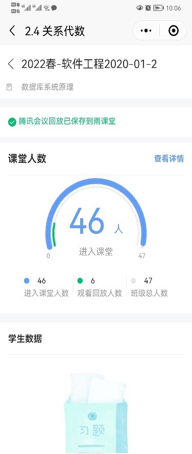 自2022年3月14日以来,为了防止疫情蔓延,校园采取封闭管理,教学工作全部改为线上教学。为了保证线上教学质量,我们做了充足的准备工作。数据库系统原理课程是计算机类专业重要的平台课程,为了实现线上线下教学实质等效,课程组经过多次研讨,结合课程的特点,在已有教学资源及教学经验的基础上,整合多个线上教学平台,充分发掘各教学平台的优势,提出了雨课堂+腾讯会议+超星的线上教学模式,并辅以问题驱动、案例教学、课堂研讨、翻转课堂等教学方法。实现了培养学生的数据库系统的理论和实践能力的教学目标。