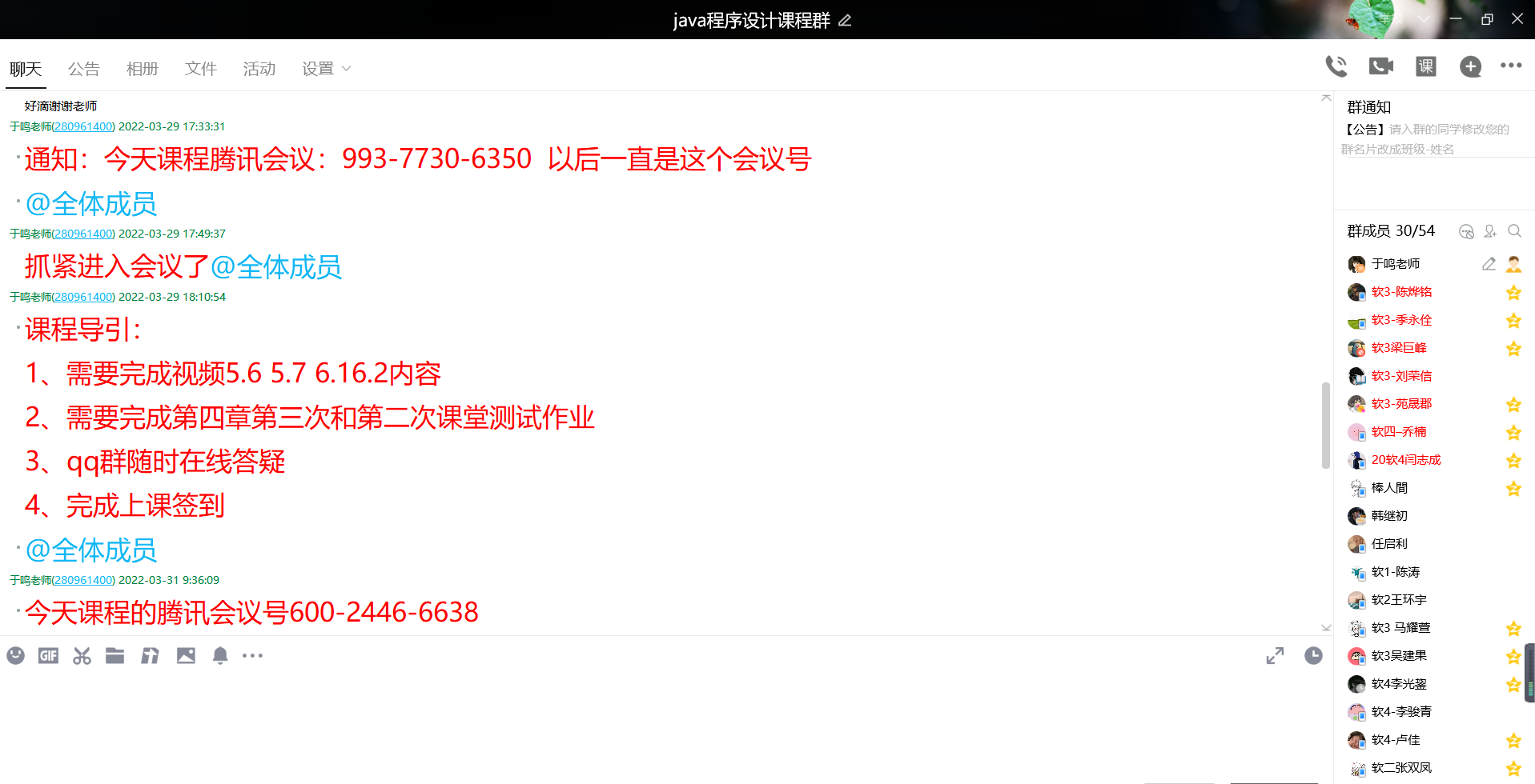 (5)利用腾讯会议组织在线答疑,利用屏幕分享功能让学生进行操作演示、ppt展示演讲分享、面对面解答相关问题。利用课程QQ群等交流手段,进行随时答疑。通过答疑交流,了解学生对知识点理解和应用编程情况。
