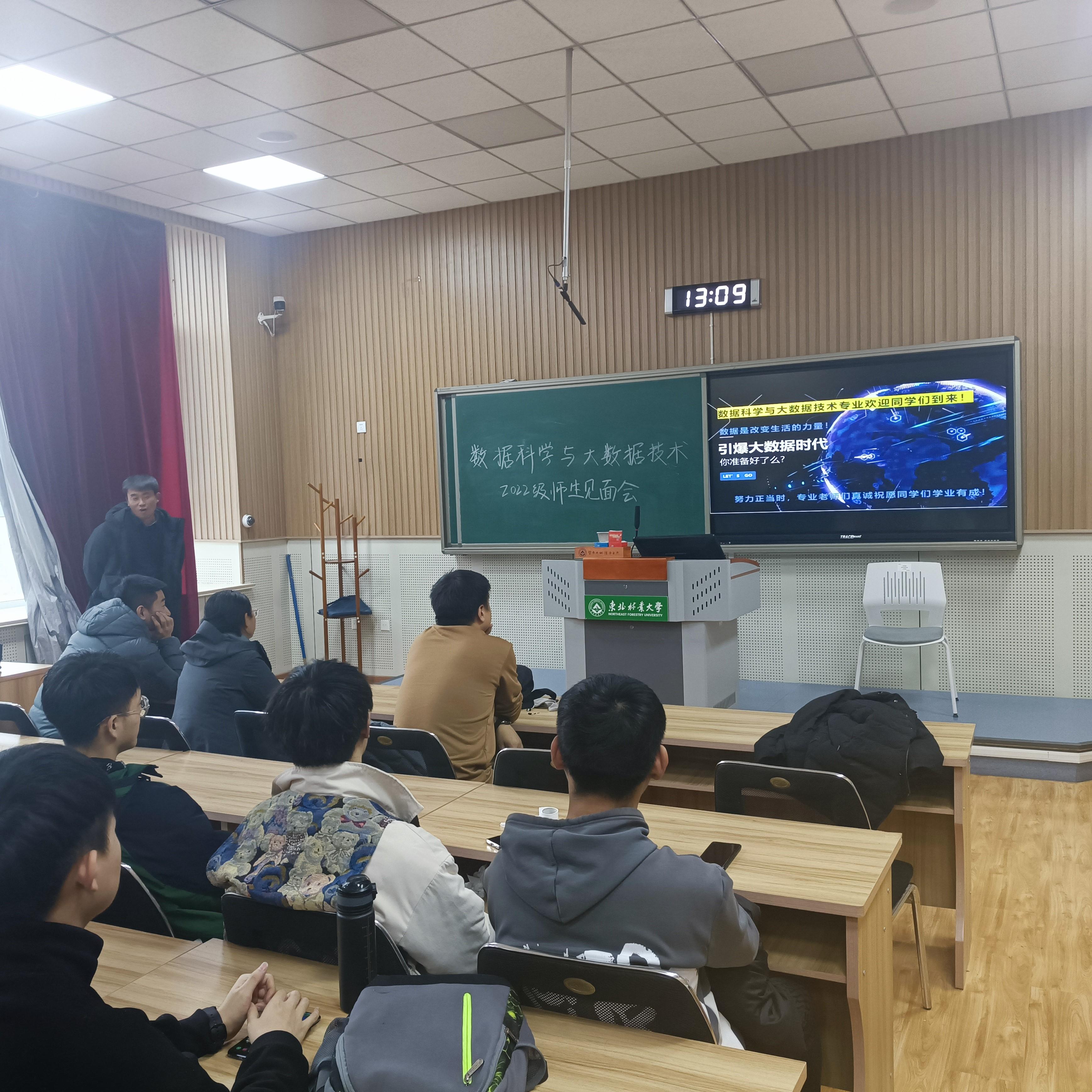 2023年11月16日,2022级数据科学与大数据技术专业的师生见面会在丹青楼424举行。本次见面会由大数据专业主任纪明宇老师主持。共有11名老师和57名同学参加,老师们从专业基本情况、行业发展、职业规划、班导师政策、开课内容等方面对专业进行了介绍。