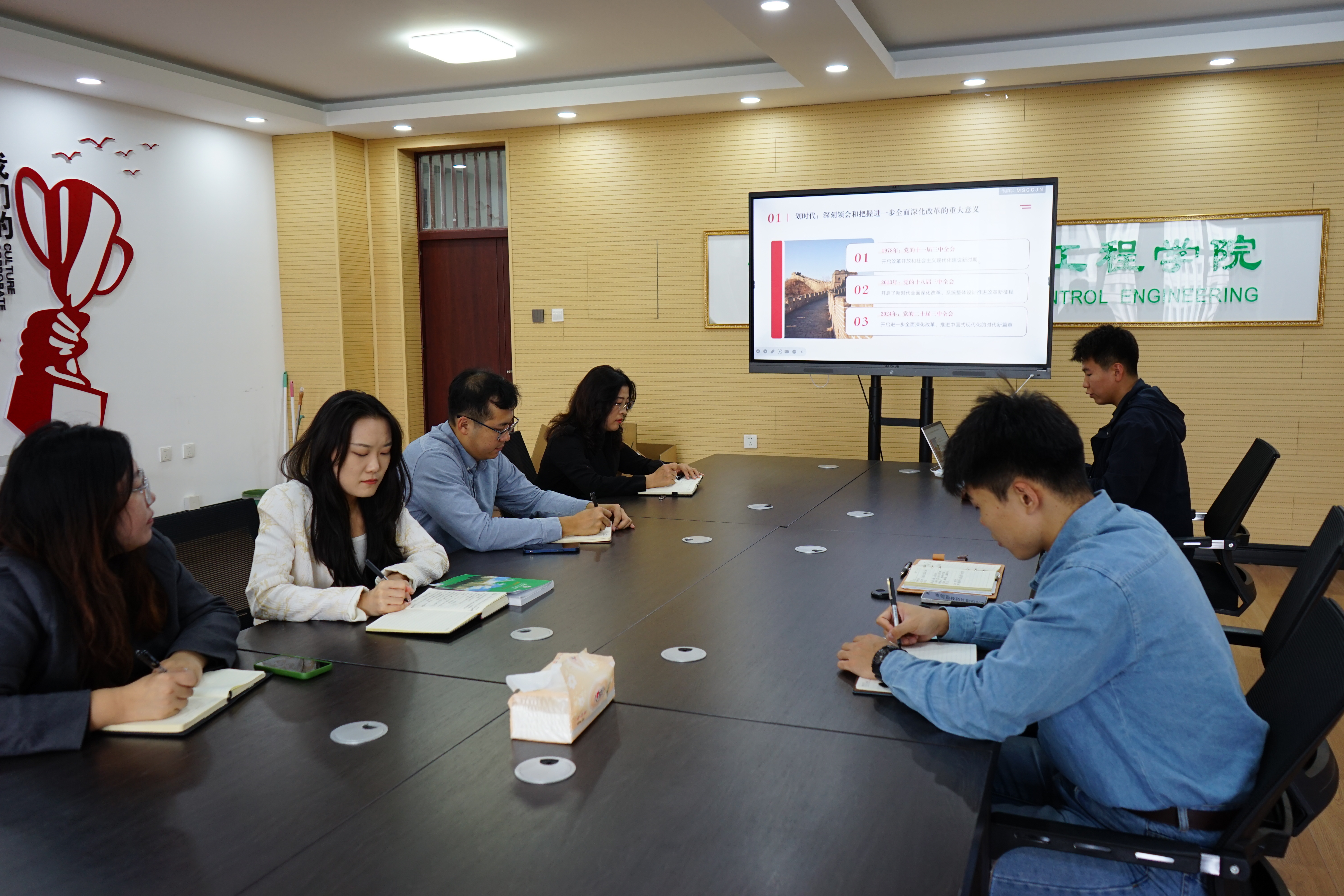 集体学习后,在场辅导员结合实际工作发表了自己的理解和体会。会议最后,庄雯培强调,要准确把握二十届三中全会的重大意义和精神实质,坚决把思想和行动统一到以习近平同志为核心的党中央决策部署上来,进一步厚植爱党、爱国、爱社会主义情怀。自觉履行教育强国建设的使命担当,把学习宣传全会精神与落实立德树人根本任务相结合,不断深化能力作风建设,提高政治站位,更加科学、更加扎实、更加有效地做好学生工作。